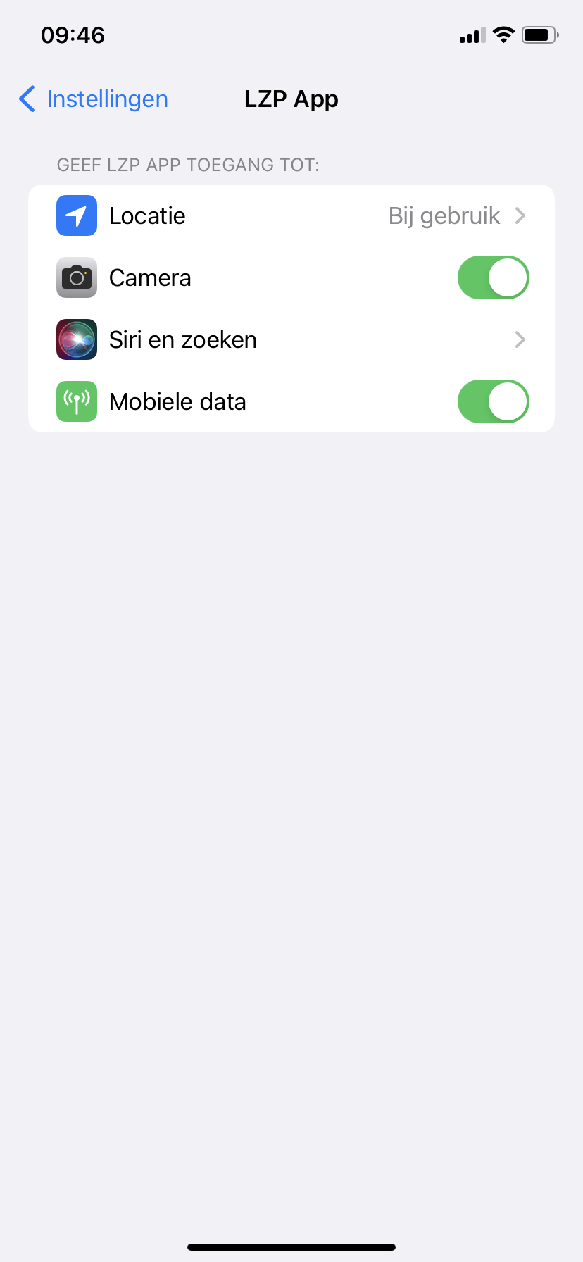 Open de ‘Instellingen’ op uw iPhone of iPad. Scroll helemaal naar beneden tot u de ‘LZP APP’ ziet en klik hierop: